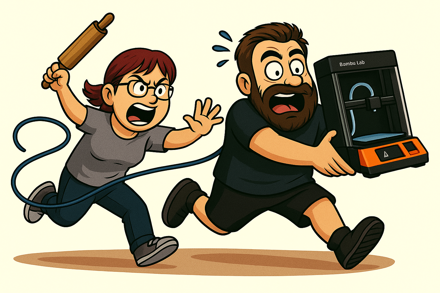 Kundprintarna rullar som de ska… ända tills frun kommer med sin “jag-har-en-liten-idé”. Den lilla idén brukar vara lika liten som ett bombnedslag.